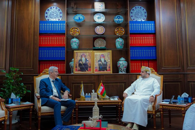 عقد سعادة الشيخ فيصل بن عبد الله الرواس، رئيس مجلس إدارة غرفة تجارة وصناعة عُمان لقاء مع تیمو هامارين الوزير...