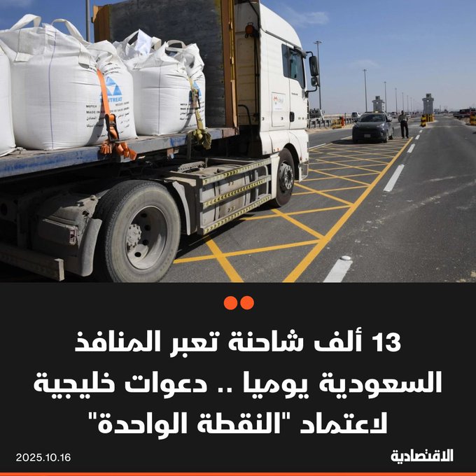 صحيفة الاقتصادية:13 ألف شاحنة تعبر المنافذ السعودية يوميا.. دعوات خليجية لاعتماد “النقطة...
